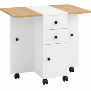 - Dos cajones superiores: perfectos para almacenar cubiertos, manteles, utensilios pequeños o documentos. Su desplazamiento es suave y silencioso, ideal para un uso diario sin complicaciones.
